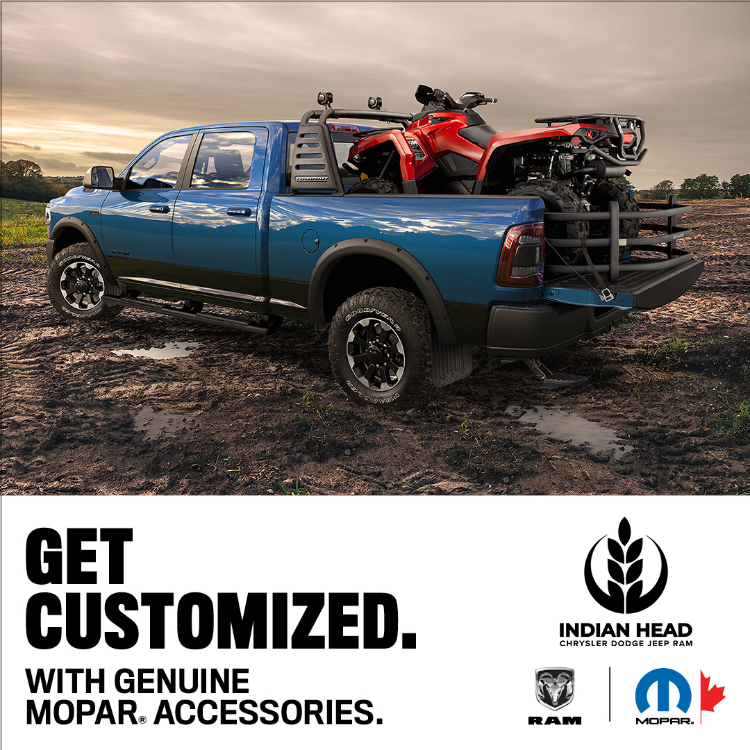 Genuine Mopar accessories allow you to tailor your vehicle to your lifestyle. Indian Head Chrysler Dodge Jeep Ram Ltd. in Indian Head, SK offers accessories designed to enhance utility, protection, and everyday functionality for Chrysler, Dodge, Jeep, and Ram vehicles.