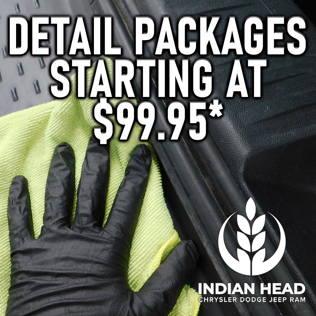 Professional vehicle detailing helps protect your interior and exterior while restoring a clean, refreshed finish. At Indian Head Chrysler Dodge Jeep Ram Ltd. in Indian Head, SK, our detailing packages are designed to address everyday wear, dirt, and buildup, with options available to suit different vehicle needs and conditions. Contact our Service Department to learn more about available detailing packages and schedule your vehicle detailing service.