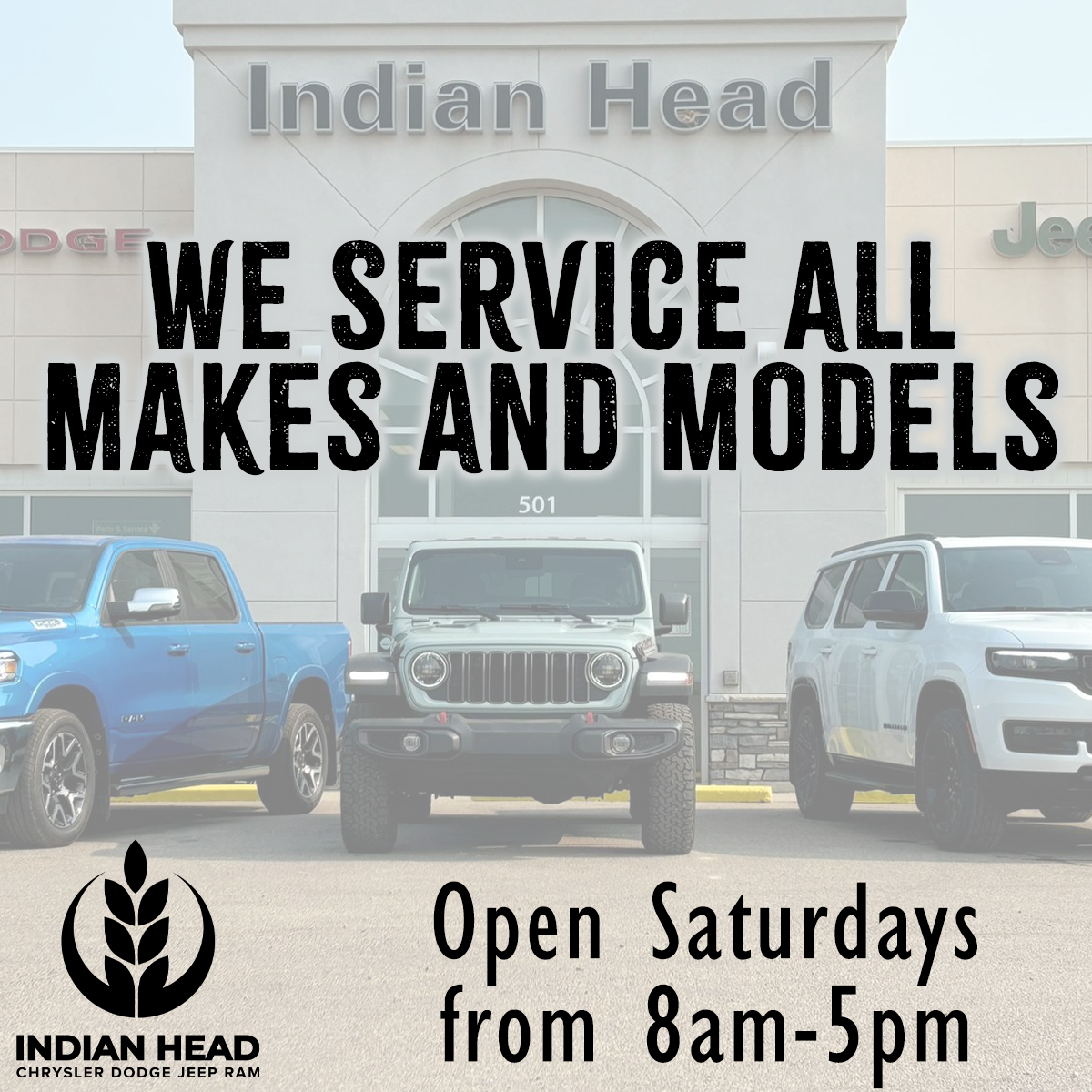 No matter what you drive, you can count on professional support at Indian Head Chrysler Dodge Jeep Ram Ltd. in Indian Head, SK. This includes vehicle makes such as Toyota, Ford, GM, Buick, Subaru, and more. Our Service and Parts teams work with multiple vehicle brands to help provide dependable maintenance and repai