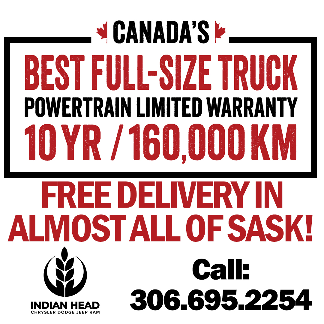 Extra peace of mind matters—especially for truck owners. Indian Head Chrysler Dodge Jeep Ram is pleased to offer 2026 Ram trucks with a 10-year / 160,000 km powertrain limited warranty, built to support long-term ownership and confident driving across Saskatchewan roads and seasons. Contact us for full warranty details and coverage information.
